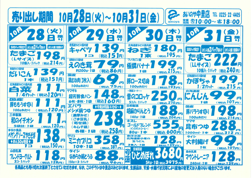 10/28(火)-30(木) 石巻のぞみ野店チラシ