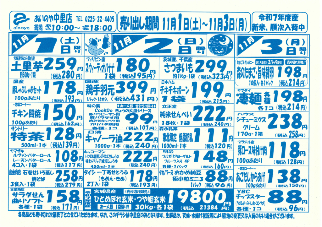 10/28(火)-11/3(月) 中里店チラシ