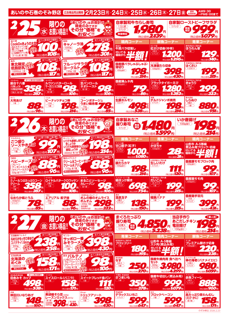 2/23(月)-27(金) 石巻のぞみ野店チラシ