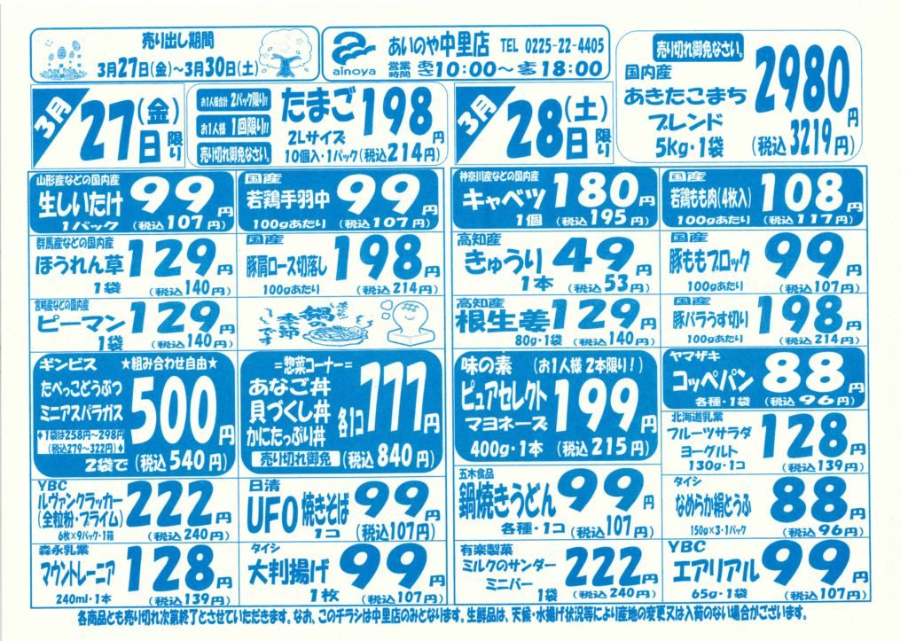 3/27(金)-29(日) 古川東店チラシ