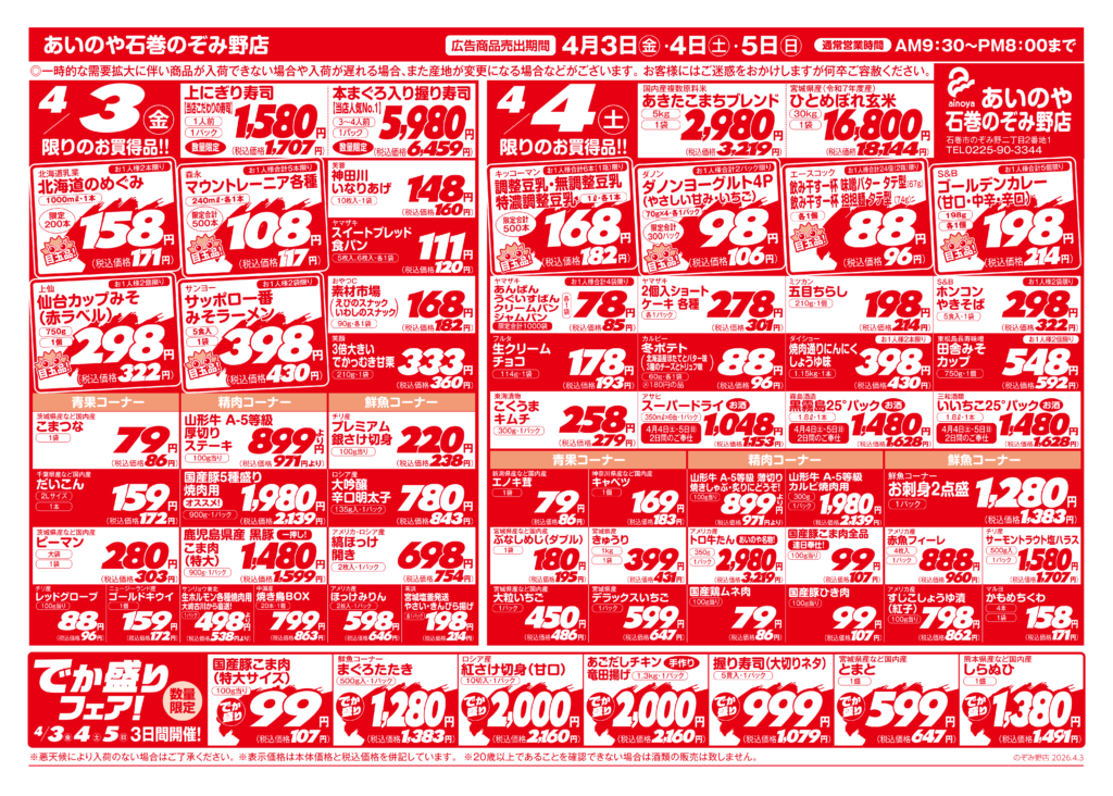 4/3(金)-5(日) 石巻のぞみ野店チラシ